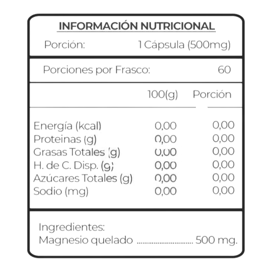 MAGNESIO QUELADO 500MG. 60 COMPRIMIDOS