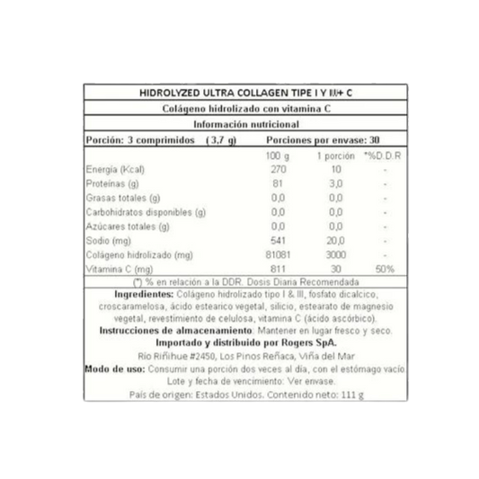 COLÁGENO, ULTRA COLLAGEN + C, 30 SERVICIOS