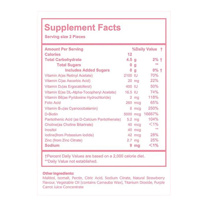 - Prueba las gomitas de osito de biotina, te aportarán los principales nutrientes para que tu pelo crezca sano y fortalecido. Cada gomita contiene la dosis perfecta de biotina, ácido fólico, pantoténico, vitamina A y vitamina C, además son 100% veganas.