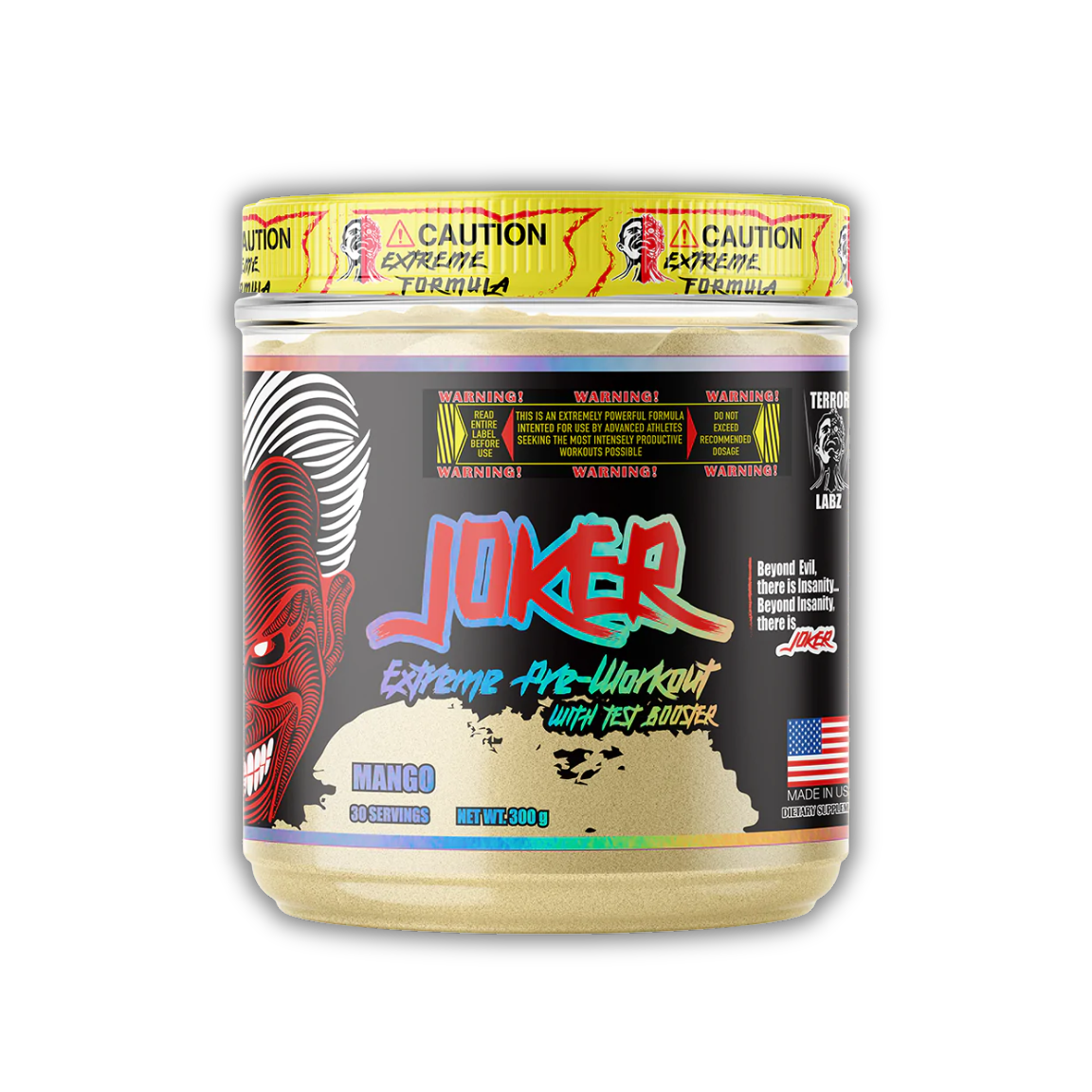 Potencia tu rendimiento con el Pre Entreno Terror Labz Joker Extreme. Este suplemento en polvo de 300 gramos está diseñado para quienes buscan maximizar su energía y enfoque durante los entrenamientos. Con una fórmula que incluye beta-alanina, cafeína y citrulina, cada porción de 10 gramos te proporcionará el impulso necesario para superar tus límites.