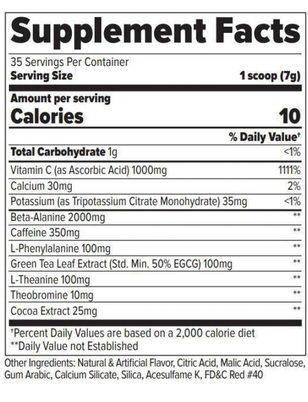 Modo de uso: Tomar 1 scoop con 8oz. de agua 15 o 30 minutos antes de tu entrenamiento.