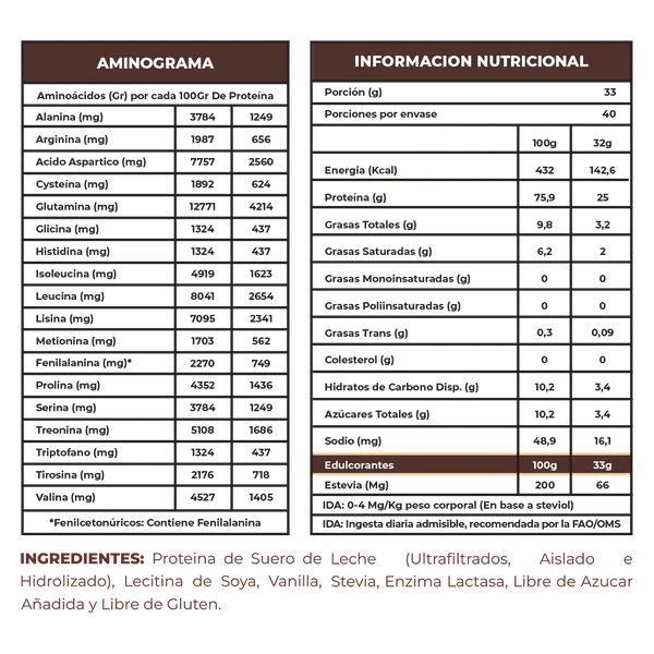 Y si hablamos de sus características nutricionales, estas no se quedan atrás, ya que cuenta con 25 Gramos de Proteína, 5,6 Gramos de BCAA´S y solo 142/144 Calorías aprox. en solo un scoop.