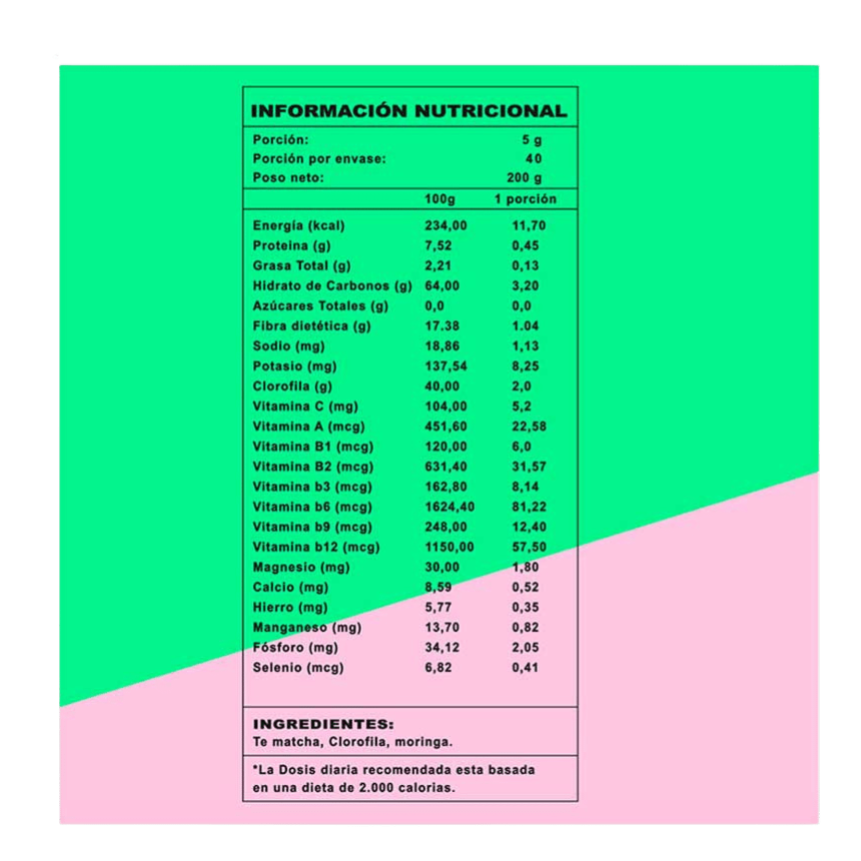El Tea Detox Girls de Greatlhete se presenta como un suplemento en polvo compuesto de Moringa, Te matcha y Clorofila, los que se complementan para logran una infusión desintoxicante del organismo, debido a las propiedades de cada compuesto.